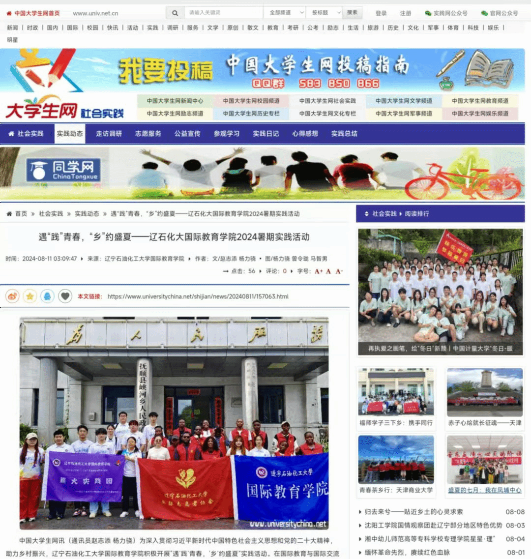 中国大学生网:遇“践”青春,“乡”约盛夏——辽石化大国际教育学院2024暑期实践活动