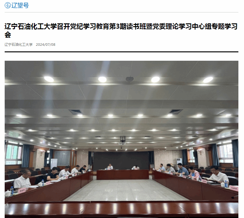 编者按:7月8日,辽宁日报·辽望号对我校召开党纪学习教育第3期读书班暨党委理论学习中心组专题学习会进行了宣传报道。现将相关报道转载如下: