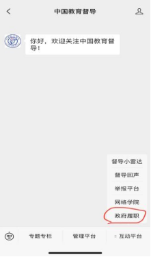 3. 选择“政府履职”,进入问卷系统,根据各自身份(学生、教师和社会人士),选择相应问卷填答