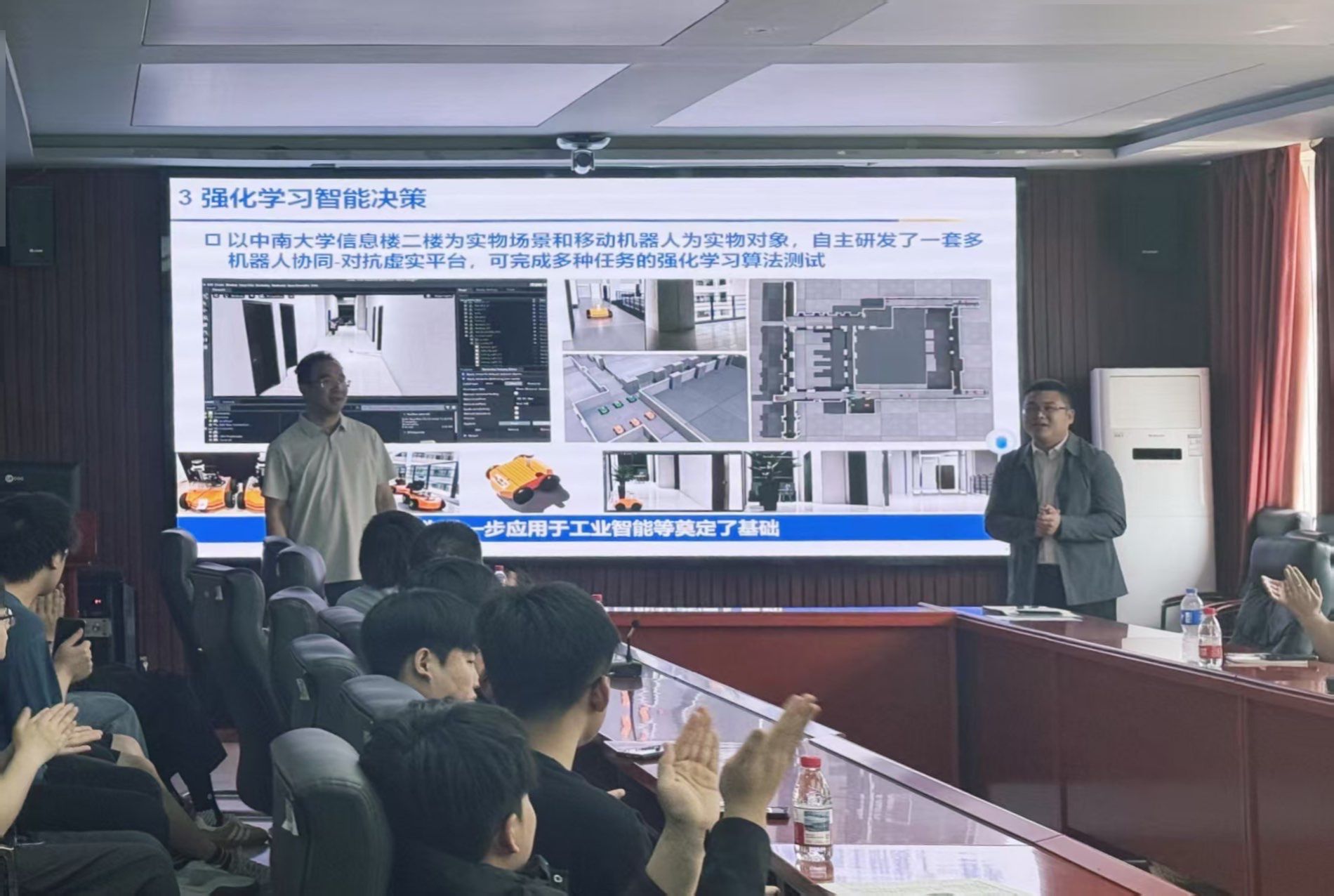 5月26日,应信息与控制工程学院邀请,中南大学自动化学院教授罗彪和华东理工大学信息科学与工程学院教授唐漾分别到校作学术报告。副校长刘海峰,信息与控制工程学院院长柳强、相关专业教师和研究生参加报告会。现场学术氛围浓厚,为人工智能与智能控制领域的前沿研究提供了深度交流平台。报告会由信息与控制工程学院副院长郎宪明主持。